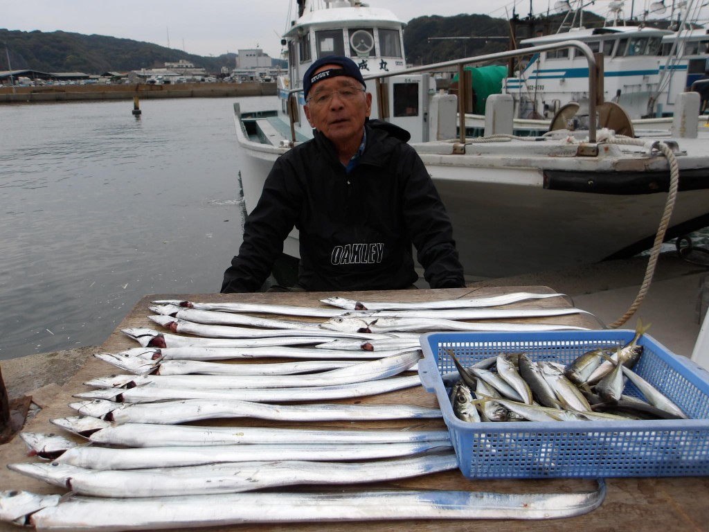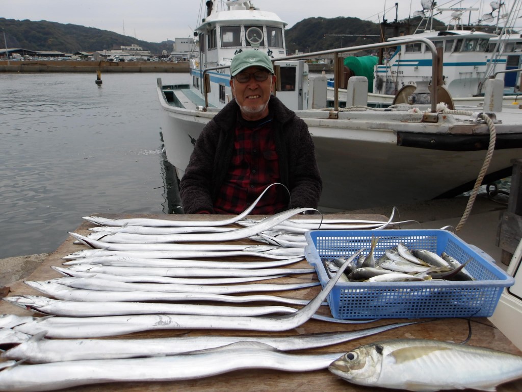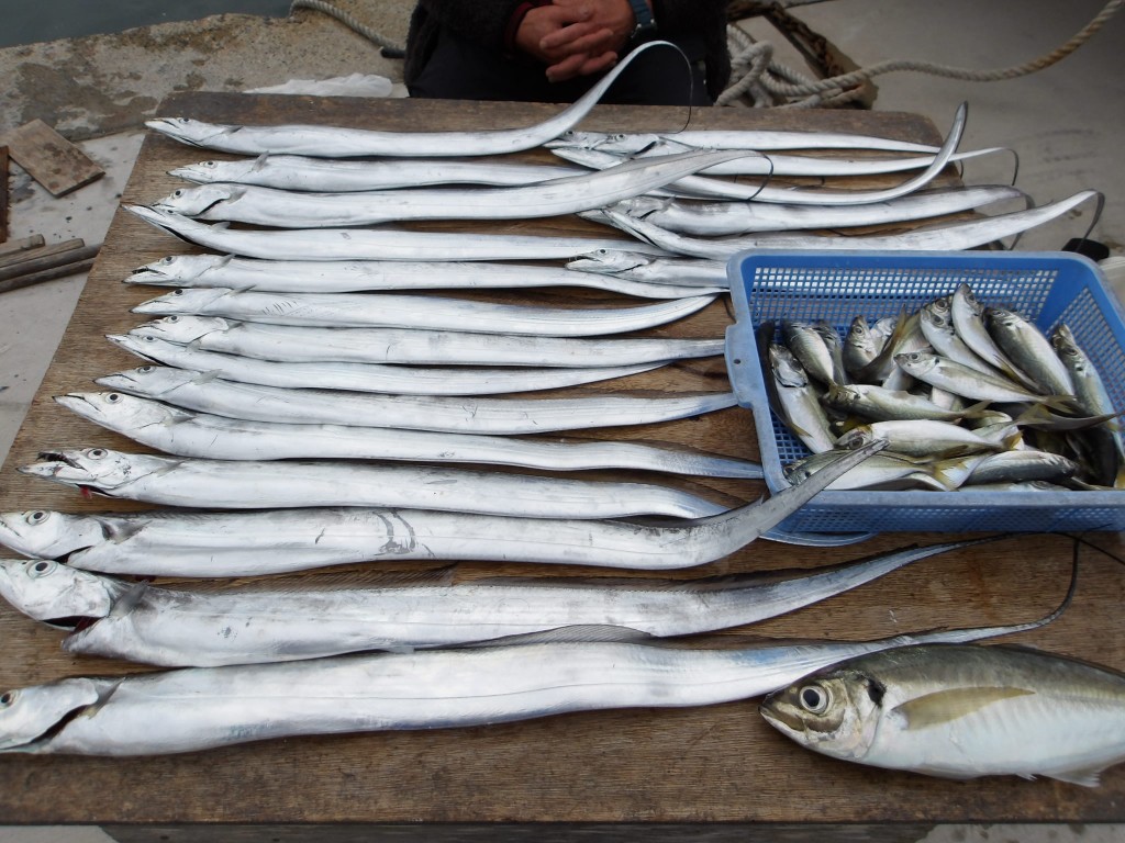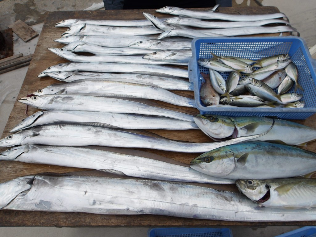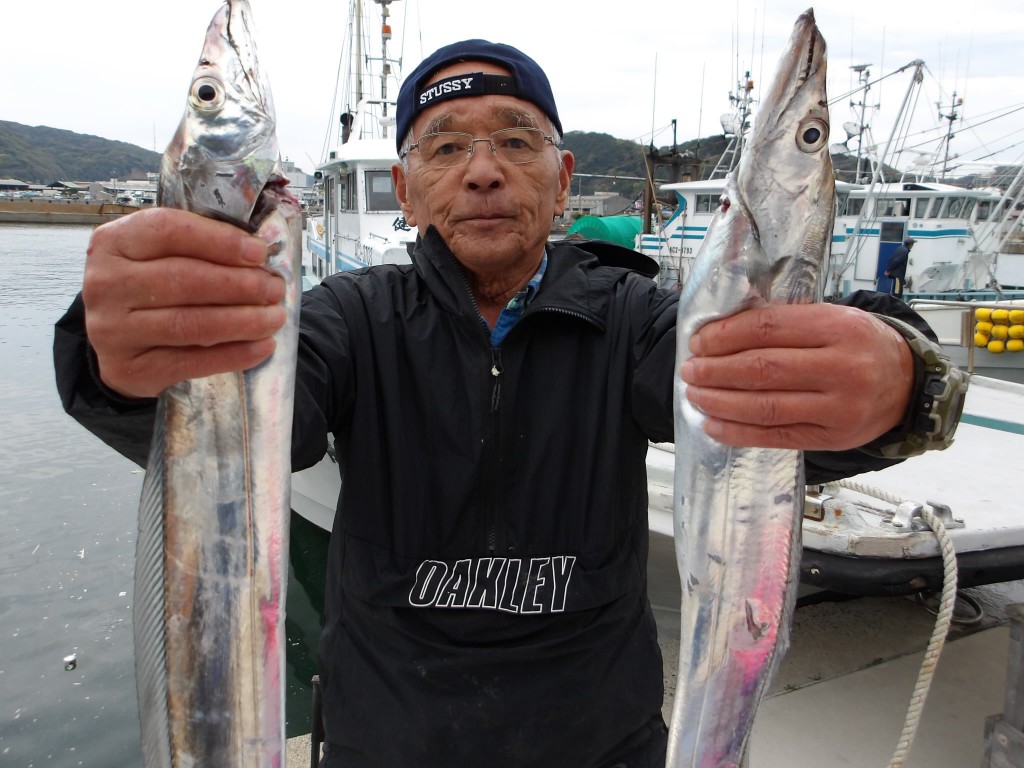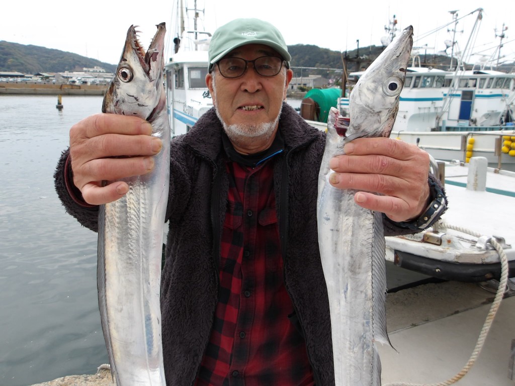 大型タチオ大漁デカタチ42025年11月13日(木) 場所…イラゴ 天候…超おだやか 釣人…塚本さん 久野さん コメント タチは最初からよく釣れてデカタチ4本も釣 れました。ハマチも予想どおり釣れて作戦成 功でした。タチウオは全部大型でした。 タチウオ希望の方は早く釣行してください。 明日も期待できます。皆様のご予約をお待ち しております。明日は超すいてます 大型タチオ好調デカタチ3 ≫