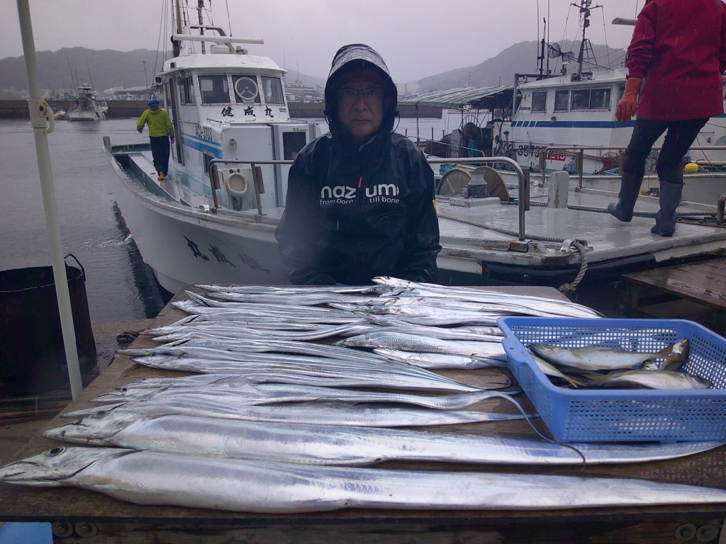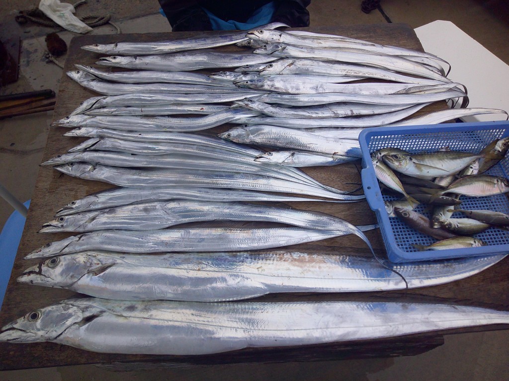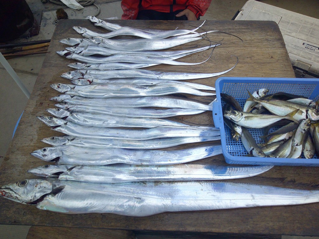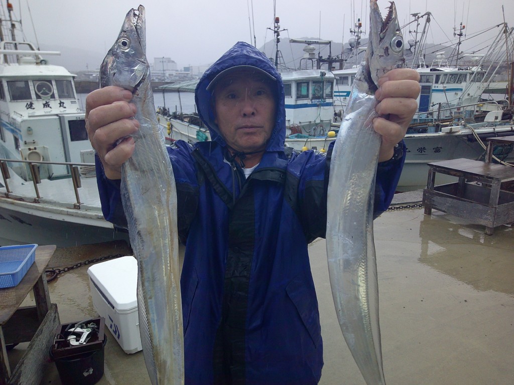 大型タチオ大漁中マダイ2025年10月11日(土) 場所…イラゴ 天候…波高い 釣人…鶴賀さん 杉本さん コメント 波がありましたがタチは大型がよく釣れた。 アジは好ポイントに当たり中が数釣れました ラッキーデカタチが4本上がりました。 ≪ 大型タチオ大漁 大イサキ2 大型タチオ大漁トラフグ2 ≫