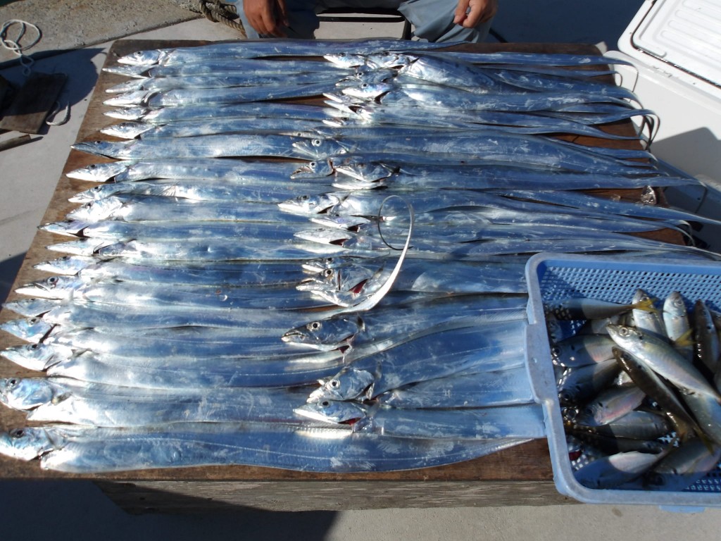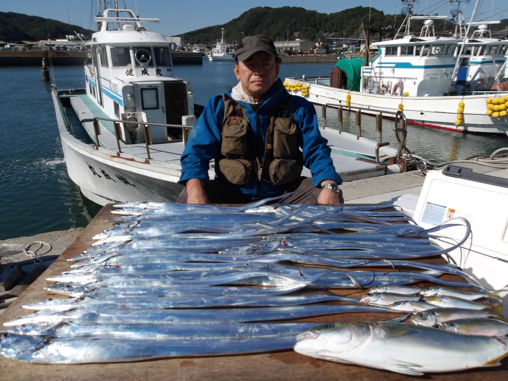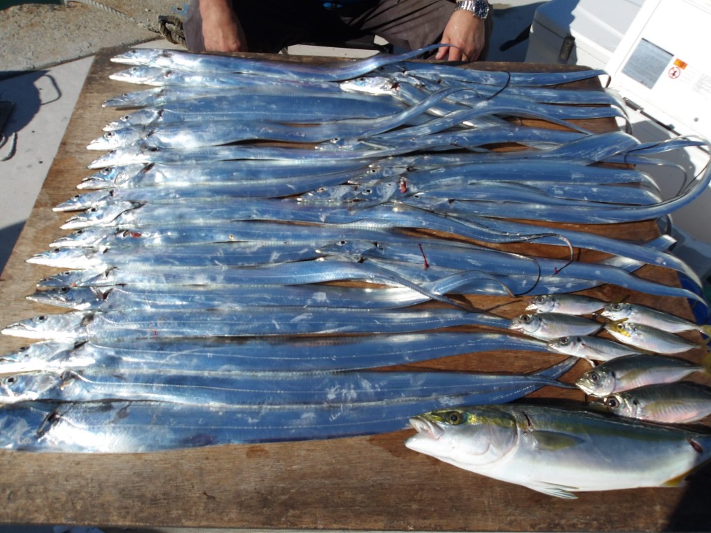 大型タチオ爆釣アジハマチ2025年10月23日(木) 場所…イラゴ 天候…超おだやか 釣人…服部さん 丸茂さん コメント タチは新ポイントで大型が爆釣でした。 アジはハマチにたぼけて太仕掛け仕様で少。 マダイやハマチのヒット多数。1匹釣れた。 明日も期待できます。皆様のご予約をお待ち しております。明日は超すいてます。 大型タチオ大漁アジ大漁 ≫