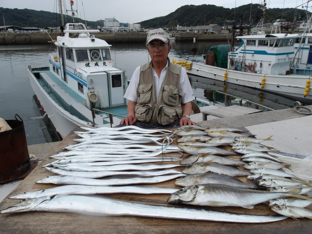 タチイサキ大漁ドラゴン好調2024年8月20日(火) 場所…イラゴ 天候…雨 釣人…北村さん 内山さん コメント タチ&イサキが大漁で大型がよく釣れました タチは多い人で60匹超。特大マアジもきた 大型イサキはまだよく釣れています。