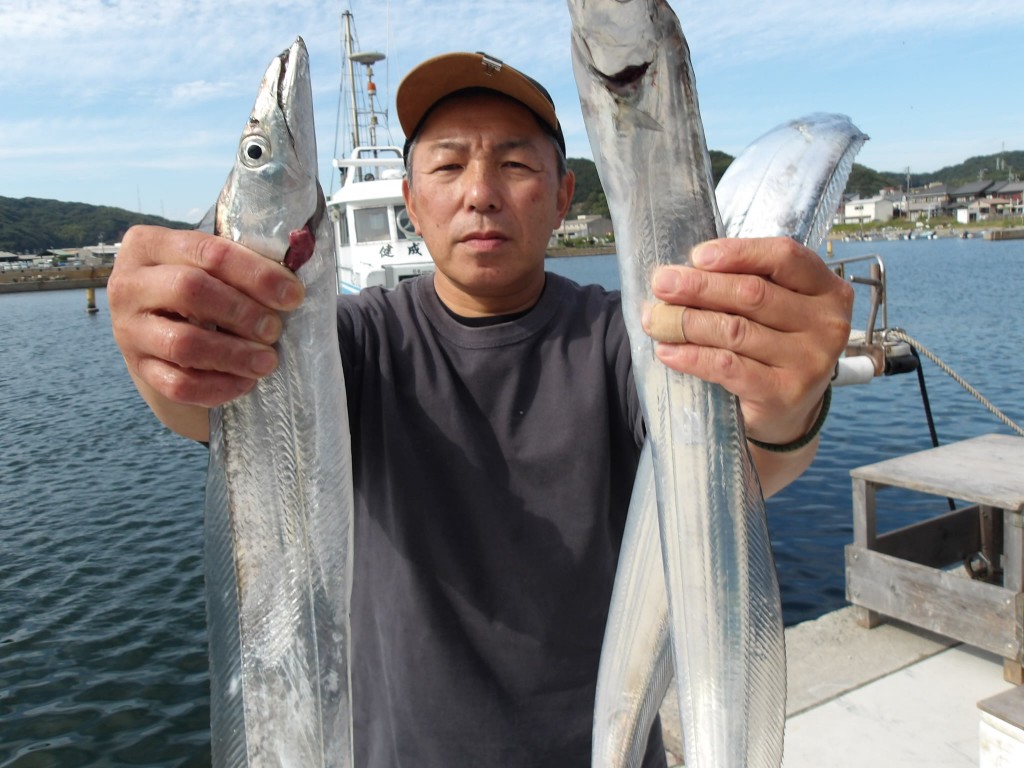 大型タチオ爆釣ワラサイサキ2024年10月11日(金) 場所…イラゴ 天候…波高い 釣人…飯田さん 小澤さん コメント 天候の加減でタチは昨日と違い爆活性で爆釣 ワラサのいいポイントに当たり3匹ゲット。 予告どおり特大イサキトラフグも釣れました