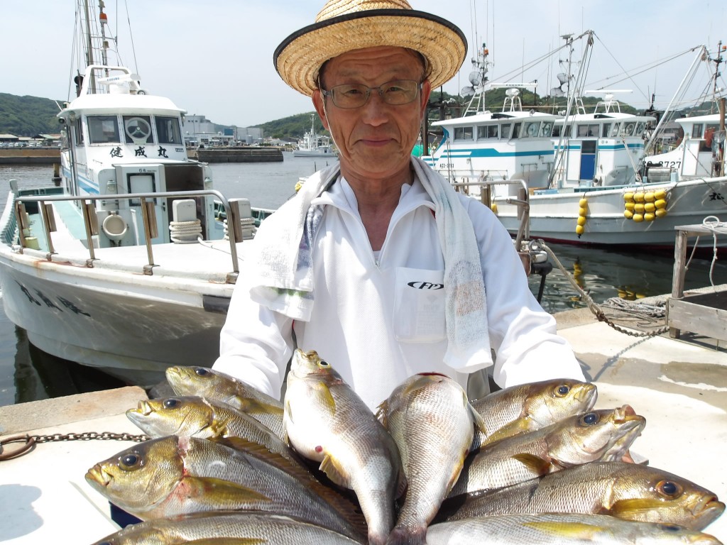 ジャンボイサキ大漁サバ少し2025年6月20日(金) 場所…大イサキ 天候…超おだやか 釣人…青木さん 押村さん コメント 人数が少なすぎてコマセが効きませんでした がなんとかジャンボイサキが釣れました。