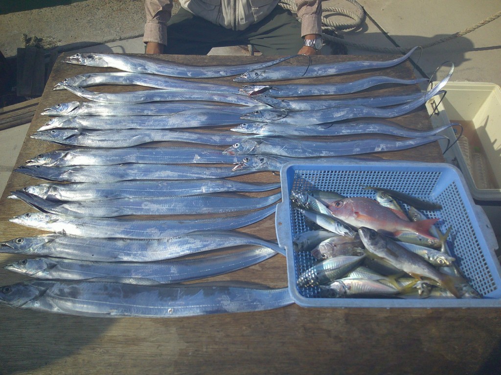 良型タチオ大漁前半風強い2025年10月17日(金) 場所…イラゴ 天候…風強い 釣人…塚本さん 安井さん コメント 前半は風強く場所移動できませんでした。 風は徐々に治まってタチはよく釣れました。 明日も期待できます。皆様のご予約をお待ち しております。明日は超すいてます。
