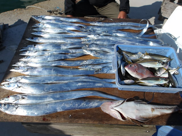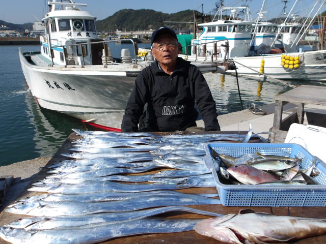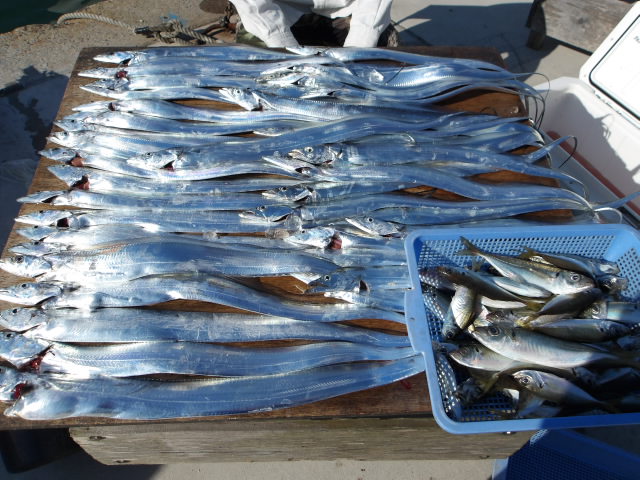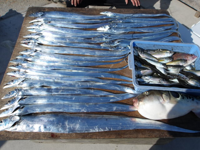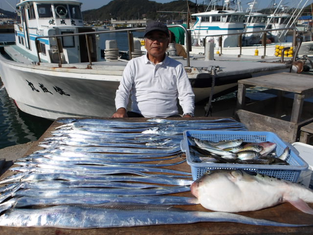 大型タチ爆釣サワラトラフグ2025年10月30日(木) 場所…イラゴ 天候…超おだやか 釣人…稲田さん 久野さん コメント タチは安定釣果で連日爆釣でした大サワラと 大トラフグが釣れました明日も期待できます マアジ大漁でしたが青物はアタリなしでした 明日も期待できます皆様のご予約をお待ちし ております。明日は超すいてます。