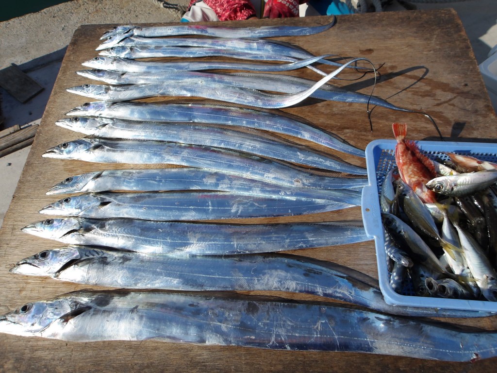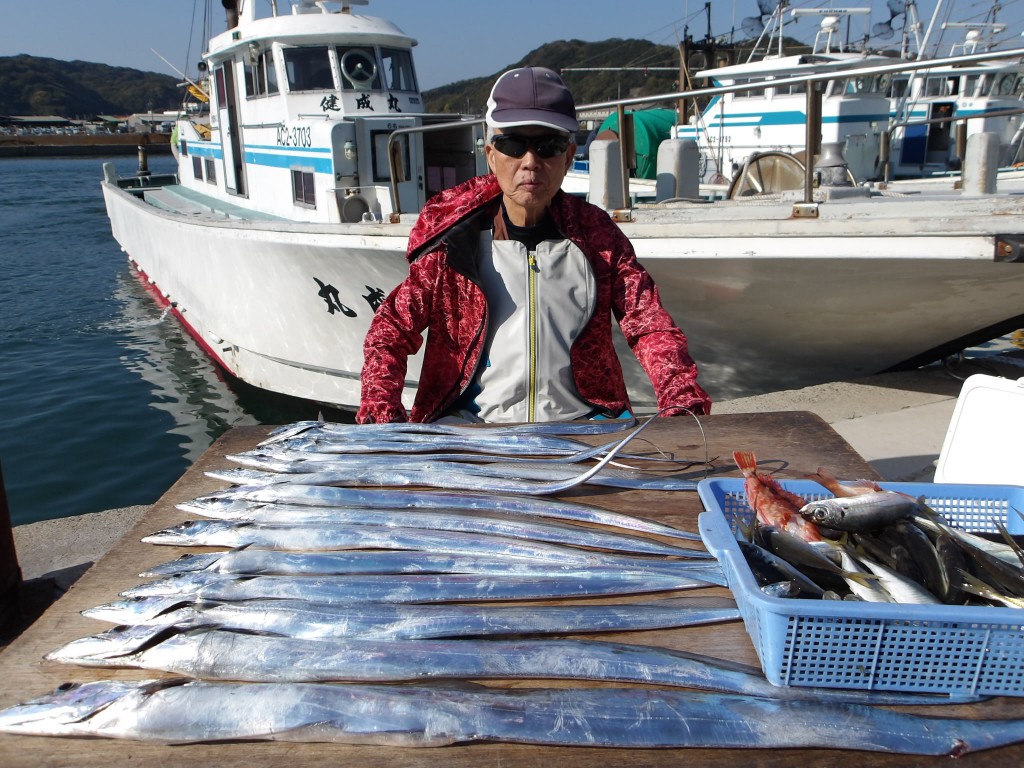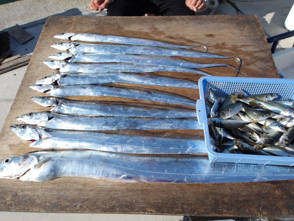 大型タチオ大漁デカタチ42025年11月14日(金) 場所…イラゴ 天候…風強い 釣人…坂井さん 青木さん コメント 風がやや強い日でしたがイラゴまで行きまし た。タチは最終便ラストスパートで大漁です タチウオ希望の方は早く釣行してください。 明日も期待できます。皆様のご予約をお待ち しております。明日は超すいてます。