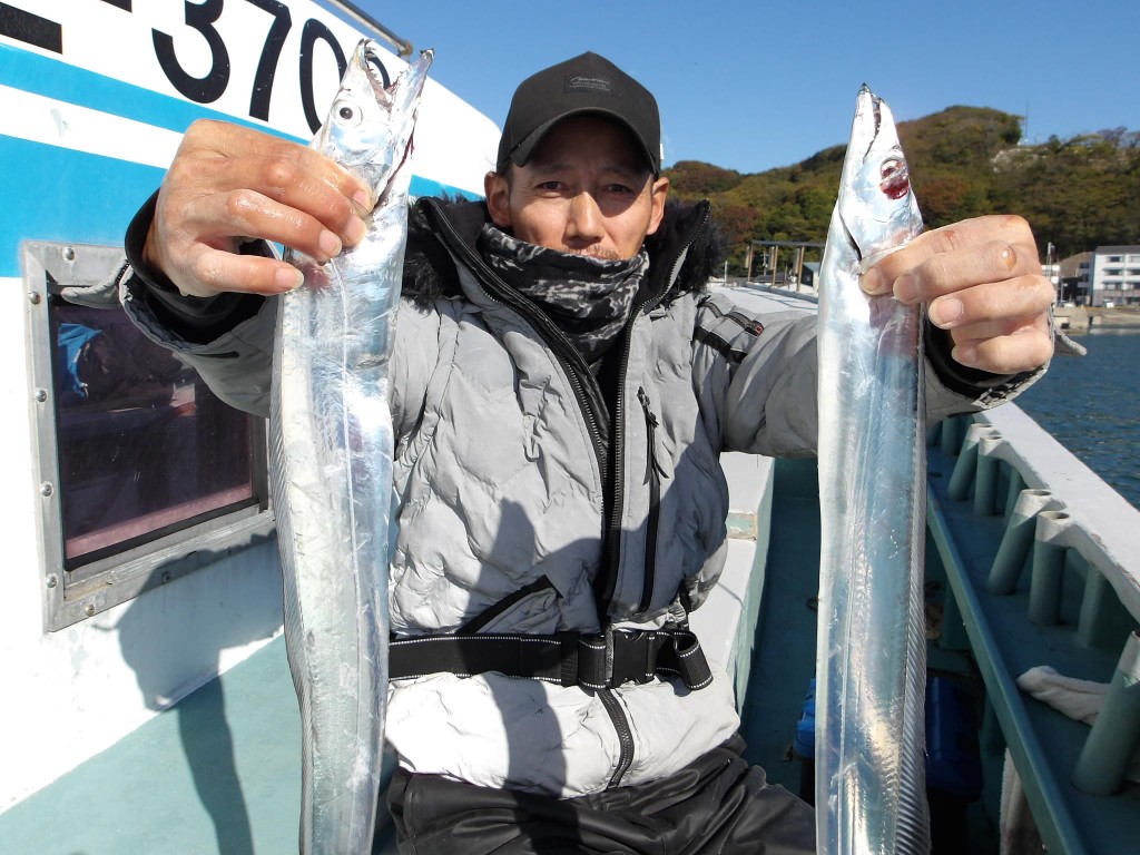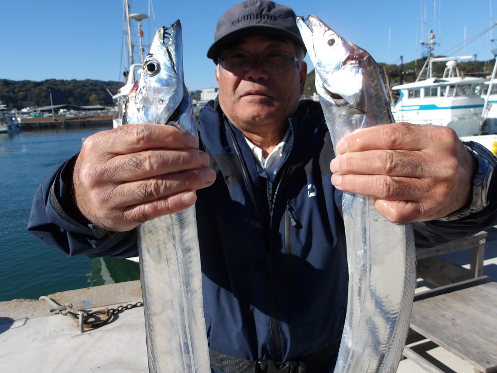 大ハマチ大漁タチウオ少し2025年11月15日(土) 場所…イラゴ 天候…超おだやか 釣人…伊藤さん 山下さん コメント 大ハマチは大漁でしたがタチは群れが少なく 1~4匹でした。タチの仕掛けは船頭仕掛け を使いましょう。もっと釣れるはずです。 明日は大丈夫でしょう皆様のご予約をお待ち しております。明日は超すいてます。 タチウオ希望の方は早く釣行してください。