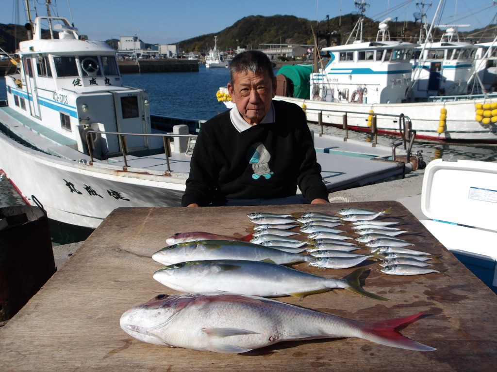 アジハマチ好調作戦成功2025年11月22日(土) 場所…イラゴ 天候…超おだやか 釣人…田中さん 川上さん コメント 今日からアジハマチ専門船。ハマチとワラサ がよく釣れました。ラッキーマダイがヒット うまく上がりました。特大イサキもきた。 明日も期待できます。皆様のご予約をお待ち しております。明日は超すいてます。