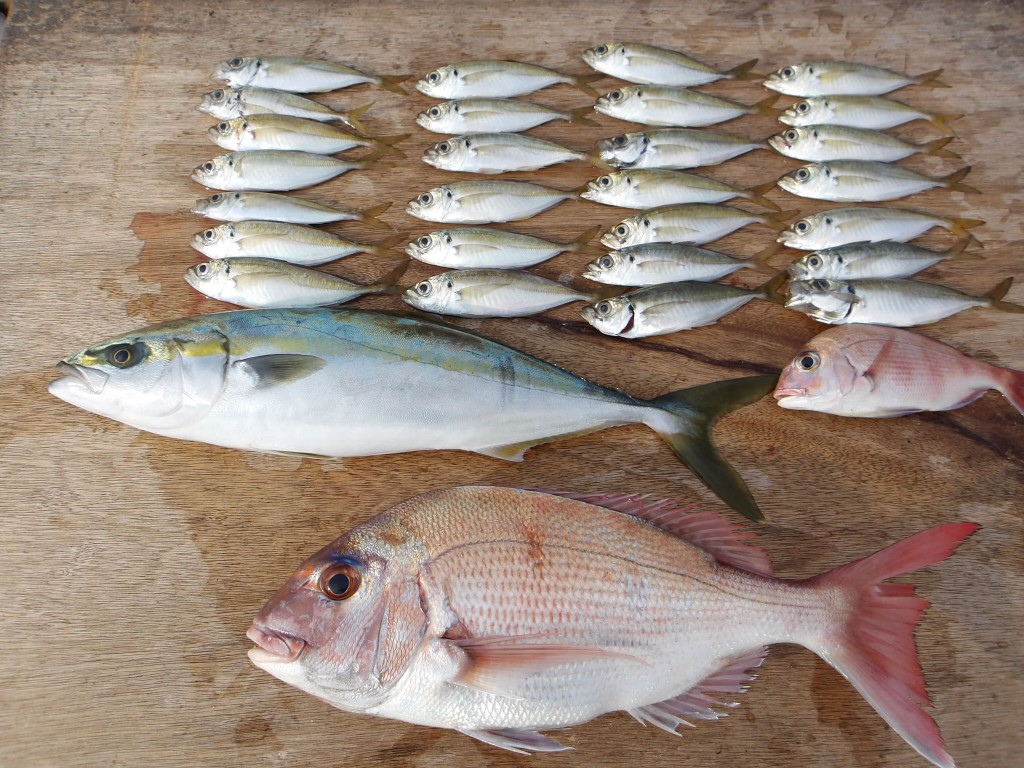 アジとマダイが好調でした。特大アジやハ