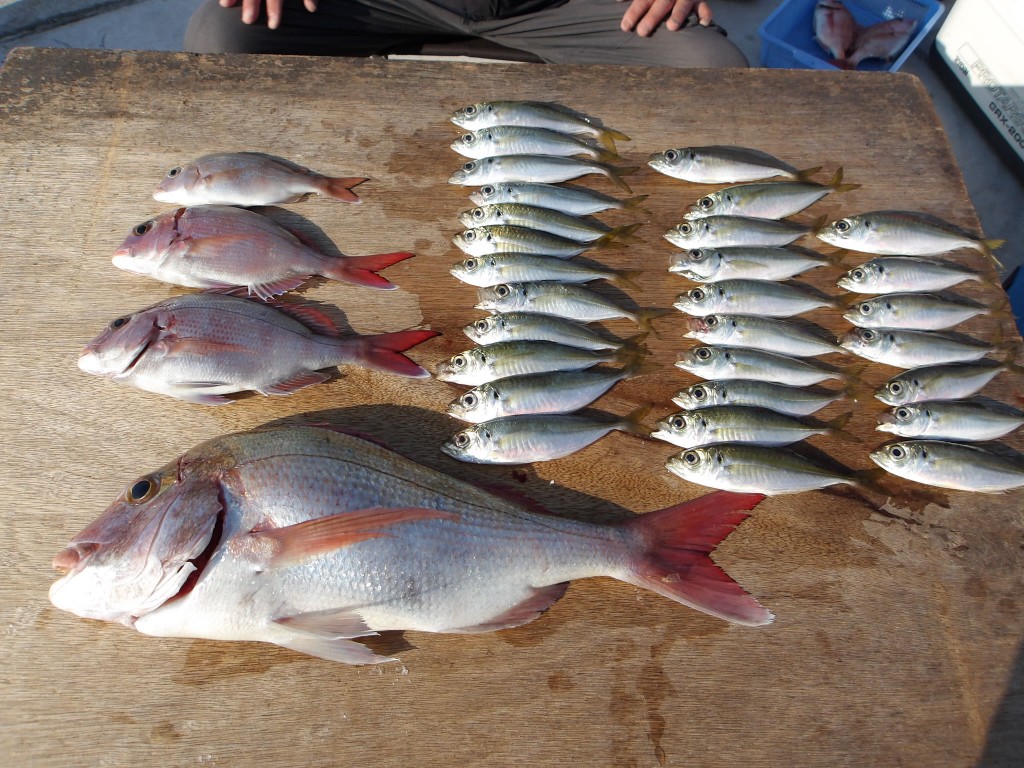 アジと大マダイ1 ハマチ1に中マダイがよ