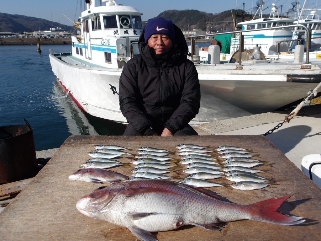 アジマダイ好調大マダイ2025年12月29日(月) 場所…イラゴ 天候…超おだやか 釣人…高木さん 平良さん コメント 超おだやかで好ポイントに当たりアジとマ ダイがだーだーでした大マダイ3㌔ゲット ほかにもヒットがありましたが上がりませ んでした。アジは潮周りよく50~100匹。 明日も期待できます。皆様のご予約をお待 ちしております。明日は超すいてます。